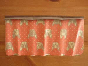 ポケット部分を折りあげて表側に見える部分は逆さになりますので、柄の向きに注意して裁断してください。