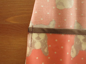 先ずは上端をバイアステープでパイピングします。