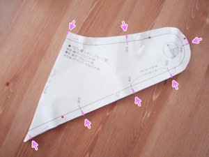 切り取ったら、型紙をはずす前にノッチ(合印)を入れます。