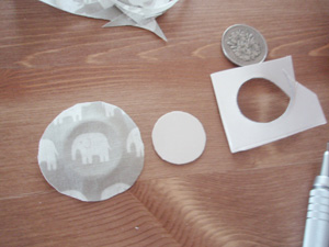 今回はだいたい100円玉くらいの大きさで良さそうだったので、100円玉を写して厚紙を丸くカットして作りました。