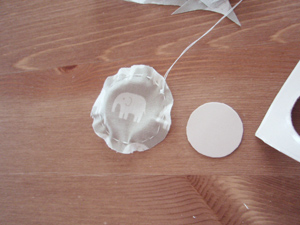円の大きさはお好みで。厚紙は、お菓子の空き箱や引出物のカタログの箱など…身近にあるものでOKです。