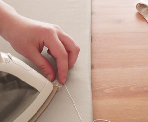 アイロンをかけて縫い代を押さえたら、中の厚紙をそっと取り出します。↓思い切って半分に折ると取り出しやすいです。