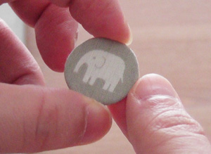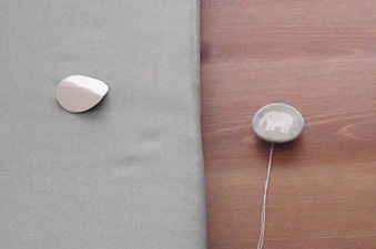マジックテープの丸い縫い目部分に、くるみボタン風にアップリケをつけてみます。