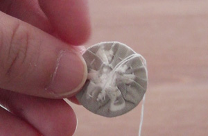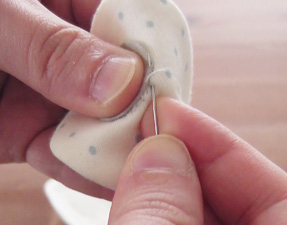 ↓くしゅっとしぼって丸の形を整えます。表から見ると↓右のような感じに。