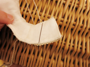 うしろあき部分に面ファスナー(マジックテープ)をぬいつけて完成です。
