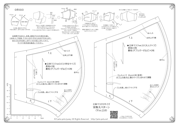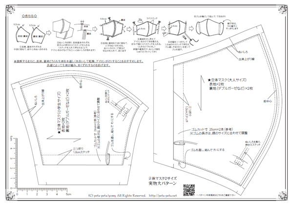 ※通常、peta-petaでは個人使用目的以外のコピーは不可とさせていただいておりますが、こちらのマスクの型紙は、お友達やご家族、地域の方やお店のお客様など、周囲の方への配布用コピー原本として使っていただいても問題ありません。