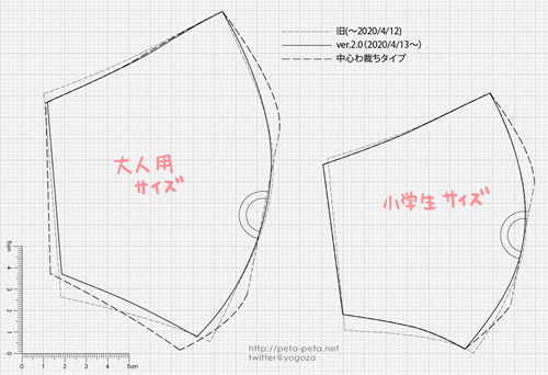 大人用立体マスクと、一回り小さい小学生サイズのパターンです。