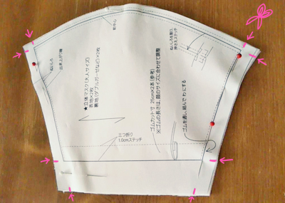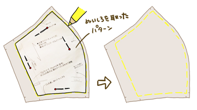 ぬいしろを取った型紙を当てて、チャコペンでぬう位置を描いておくと、ぬいやすいと思います。