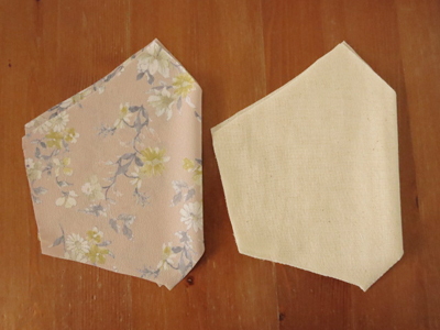 この写真の工程では省きましたが、手ぬいなので、出来上がり線通りに縫うのに自信がなければ、このあと型紙のぬいしろを切り落とし(出来上がり線で切り)、それを重ねてチャコペンで縫い合わせる線を写しておくと、縫い進め易くなるかと思います。