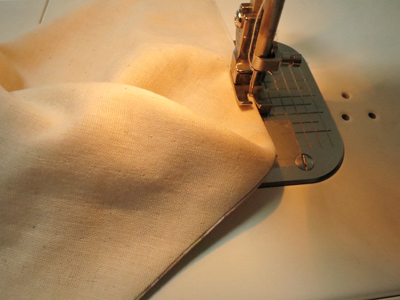 上下の端にステッチを入れます。コバステッチは、工業用ミシンだったら段付き押さえがあると、とっても楽です。