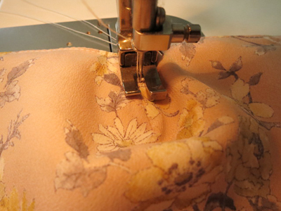 ダーツ部分も表地と裏地をいっしょに、中心をそろえてコバステッチで押さえておきます。