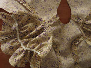 (ゴム付け位置は、生地の裏面にチャコペンなどでしるしを付けておくと良いです。)