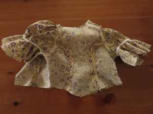 上袖の袖山側にギャザーミシンを入れて、あき部分はいってこい始末でパイピング処理をしておきます。