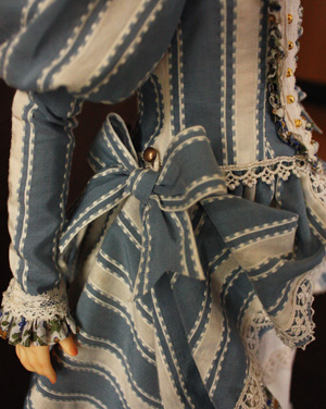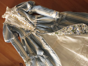 オーバースカート裏側も別布(小花柄ローン)。縁には細巾トーションレースを挟みます。