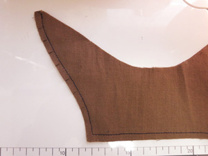 縫い代はヨーク側に倒し、コバステッチをかけておきます。