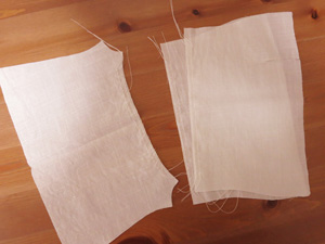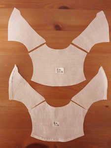 ヨークを表裏それぞれ肩線を合わせて中表に重ね、縫い合せておきます。
