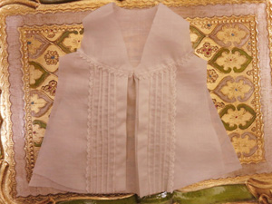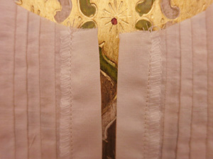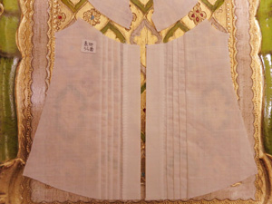 この時点でヨーク切替の上に飾りレースも縫いつけておきます。(前のみ)