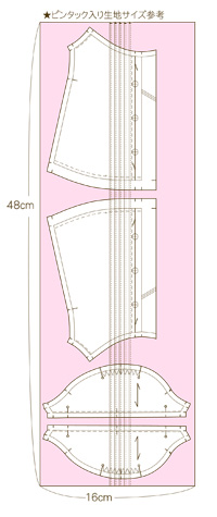 あらかじめ下図のように一枚の長いピンタック入り布を作って裁断します。