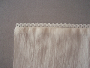 ミシンをかけたら、ミシンをかけた位置で裏側に二つ折りします。きれいにレースの山が出ます。