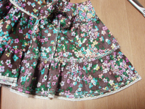 この作り方だと、一番下のフリルの接ぎ合せ部分の縫い代は裏面からロックミシンの目が見える状態に仕上がるのですが、