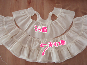そして、フリルと縫い合わせていくのですが、表裏の向きに注意してください。