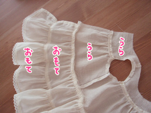 中表ですが、フリルの裏面と見頃の表面を合せて重ねます。