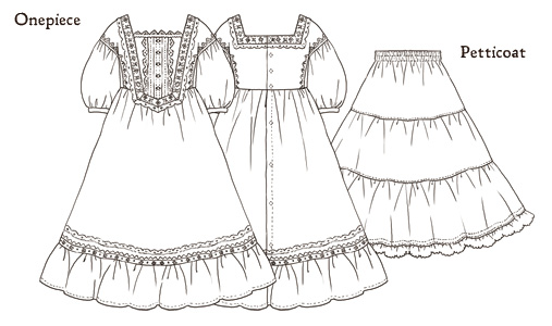 スクエアネックワンピース/ティアードペチコート