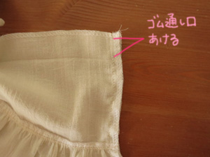 すでにゴム通し口を作ってあるので、このステッチははじめからおわりまでつなげて輪にしてぬってしまってOKです。
