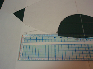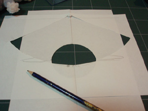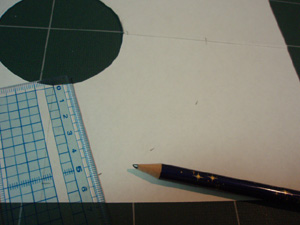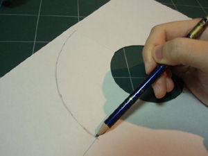 円くくりぬいた紙に、最初に描いた紙を中心線を合わせて重ねます。