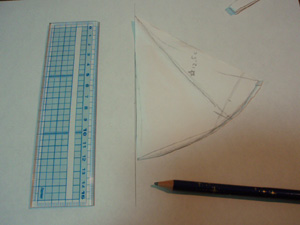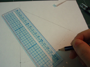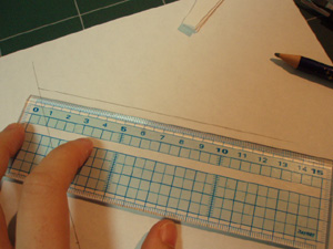 別の紙に直線を引き、中心線を合わせておき、外形を薄めの線で写し取ります。