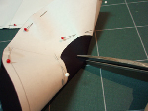 こんな感じに。中心線のところには、縫い合わせる目印にノッチ(切り込み)を入れておきます。