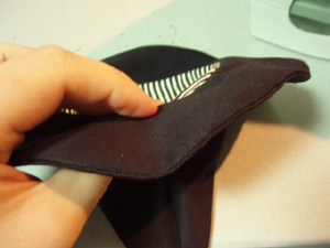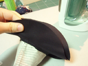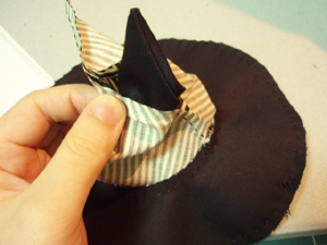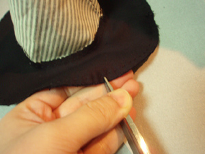 ブリムのふちがきれいなカーブの形になるように、アイロンをかけて整えます