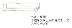 ベルトは下図のように裏地側の下辺を折り上げてステッチで止めておきます。