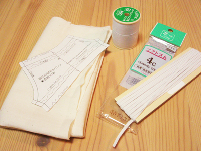 ●4コールゴム(3mm巾のゴム)…10cm×1本(ウエスト用)、7cm×2本(裾口用)