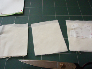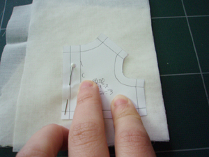 裁断します。裁断時の注意は、かぼちゃパンツの回を参考にしてください。