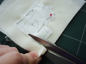 裁断が終わったら、ノッチを入れます。ノッチの入れ方も、かぼちゃパンツの回を参照してください。