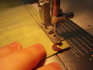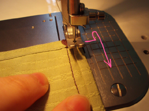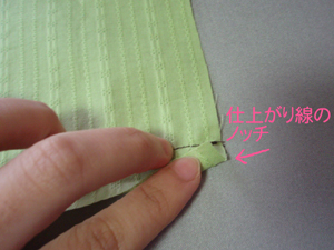 後ろ端の三つ折りは、裾よりちょっと太めの7mm巾に設定しています。