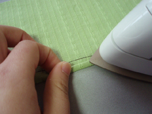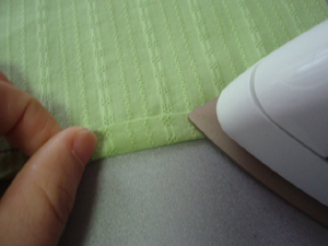 アイロンでしっかりと三つ折りしておいてください。