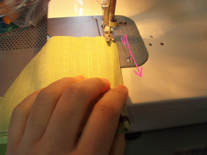 ではミシンで三つ折りを一気にぬっていきます。
