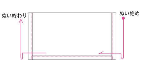 1辺ずつ縫うのに比べると、時間と糸をちょっとだけ節約できます。
