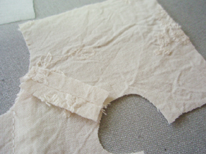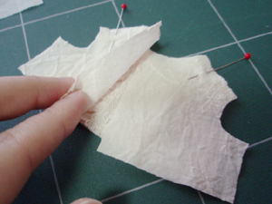 裏地の肩のぬいしろは、後ろ身頃側に倒します。