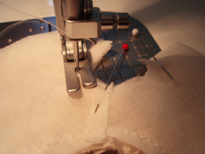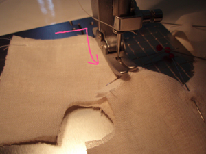 距離の短い部分ですが慎重に。返し縫いもします。ぬいしろ巾は5mmです。