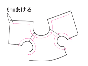 えりぐり、そでぐりは特に難しく、ずれやすい部分ですが、もし縫いしろ巾が極端に太くなってしまった場合、